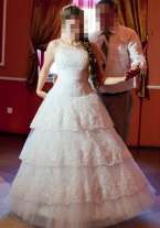 Девочки, в связи с переездом продаю своё любимое счастливое свадебное платье А-силуэта с кружевом шантильи, расшитое жемчужным бисером. Платье очень удобное, потрясающе красиво смотрится и в жизни, и на фото, и на видео. Размер регулируется за счёт шнуровки на корсете. Платье после химчистки, в отличном состоянии. В ПОДАРОК отдаю кринолин на два кольца, болеро, сумочку, меховую накидку и чехол для платья. При необходимости дополнительные фото вышлю на почту.