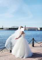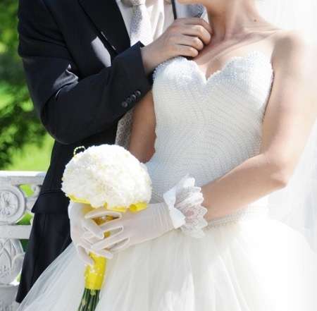 Срочно продаю пышное свадебное платье молочного (айвори) цвета. В живую очень красиво смотрится! 44-48 размер (регулируется шнуровкой). Корсет расшит бусинам, сзади на шнуровке. В подарок к платью отдам подъюбник на 3 кольца и перчатки. Хранится все в чехле.
