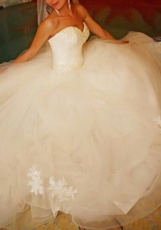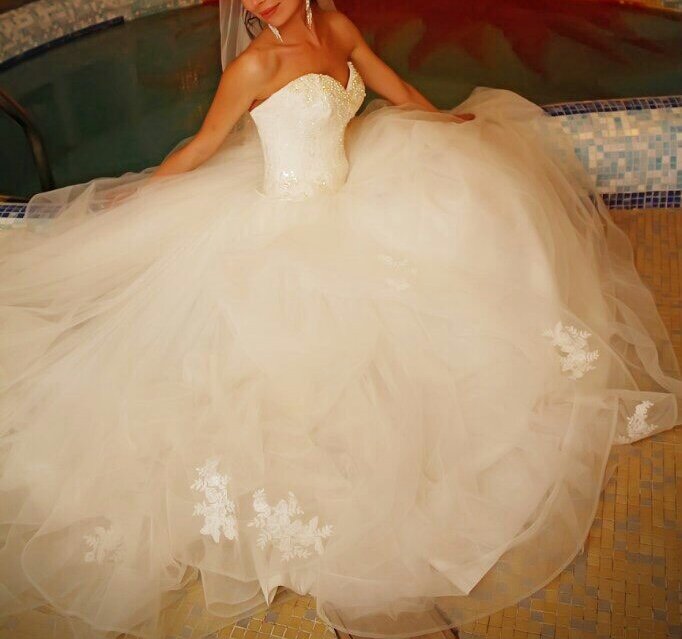 Цвет айвори, состояние отличное. Покупала за 39000. Отдаю за 18000. В подарок кольца.