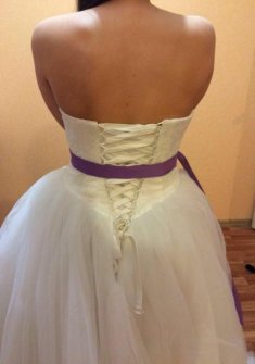Новое свадебное платье. Очень пышное, с корсетом. Платье из фильма «Война невест» было на Кейт Хадсон, коммерческая версия от Веры Вонг. В подарок к платью идет подвязка и две ленты для ремня.