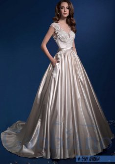 Свадебное платье Армада, выполненное в потрясающем жемчужном цвете. В области спины, плеч и груди корсет украшен вышивкой. Пышная юбка выполнена из переливающегося атласа, струится вертикальными волнами, переходя в шлейф. Завершает образ лаконичный пояс небольшим бантом на спинке. СИЛУЭТ: Пышное. РАЗМЕР: 44. ТКАНЬ: Расшитое кружево, Атлас-стрейч. Платье прошло полную химчистку и не уступает новому платью из магазина. Состояние отличное. Также при покупке платья кринолин на 2 кольца в подарок.