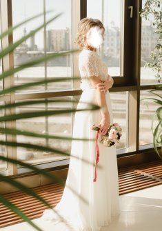 Состояние новое, идеальное, прошло химчистку. Модный дом Стрекоза, коллекция 2017 г. Цвет белый, корсет капучино, не подшивалось, кружевной топ вышит жемчужными бусинками. Чехол в подарок.