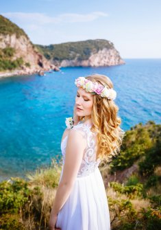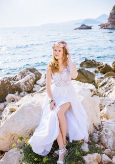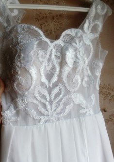 Очень нежное, сказочное платье. В нем вы можете быть и греческой богиней, и лесной нимфой одновременно. Орнамент частично вышит на прозрачной ткани, поэтому кажется, что он расцветает прямо на теле. На спинке соблазнительный вырез. Это тот уникальный случай, когда белое стройнит! Помню, как сильно меня это удивило в примерочной. Платье я надела один раз для фотосессии. Есть 2 незаметные зацепки. Торг уместен. Также в подарок даю веночек с фото.