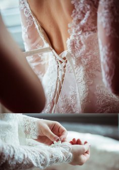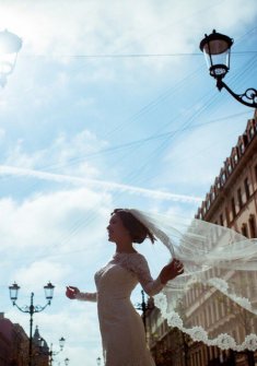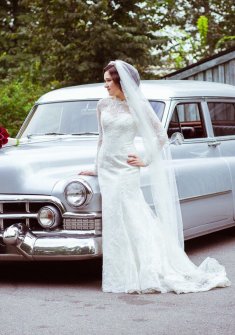 Нежное кружевное платье цвета Айвори. Закрытые плечи, открытая спинка, шнуровка, небольшой шлейф. Платье в идеальном состоянии. Сзади сделана жемчужная застежка для поддержки шлейфа во время ходьбы. Отсутствует лента для шнуровки. Платье продается с длинной кружевной фатой. Подшито под рост 165 см с небольшим каблуком (около 5 см)