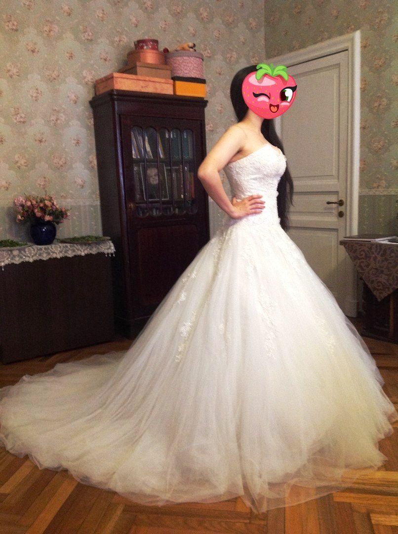 Новое платье, с биркой! Очень эффектное, пышное, со шлейфом, сзади регулируется шнуровкой 165-170 + каблуки. Верх из кружева, декор из кружева переходит на юбку. В этом платье Вы будете самая красивая и счастливая;) Фотографировала на смартфон, в жизни выглядит гораздо эффектнее.