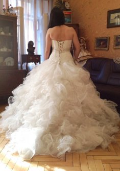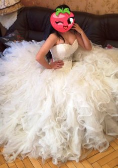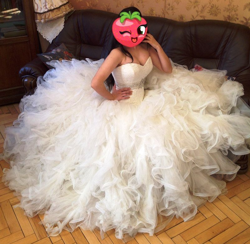 Платье новое, с биркой! Очень эффектное, юбка из множества слоев воздушной ткани, платье с небольшим шлейфом, сзади регулируется шнуровкой, подойдет на рост 165-170 плюс каблуки. Фотографировала на телефон, в жизни эффектнее.