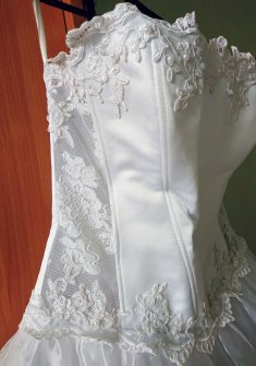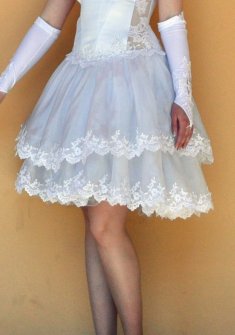 Было надето 1 раз. Ношу 42-44 р, но за счет шнуровки подойдет и на 46р. Белое, пышная юбка, по бокам просвечивает, есть лямки. После использования стирала. В процессе хранения слегка помята юбка, что легко исправляется;) Могу встретиться между метро Московская - Электросила.