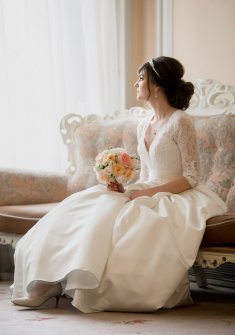 Платье в отличном состоянии! Красивый шлейф, который убирается на петельку! Вся вышивка с бисером сохранена в первоначальном виде! Платье удобное, отходила весь день) Платье после хим. чистки.