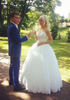 Продам свадебное платье, очень красивое и эффектное Лиф расшит бисером на шнуровке, пышное с подъюбником на 5 колец. После химчистки. На примерку приходить без тональника, чтобы не запачкать. Пишите в ЛС)) Цена 17 000 руб. Возможен небольшой торг. М. Ветеранов