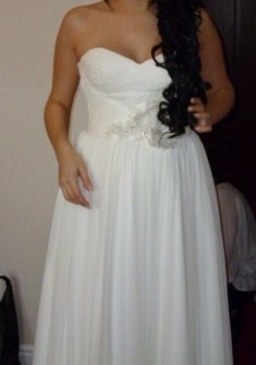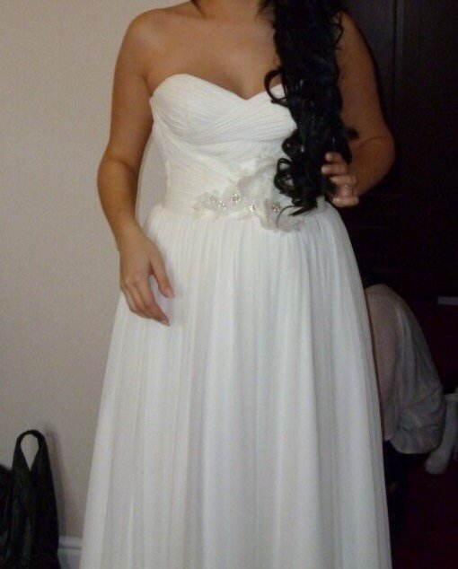 Идеальное Свадебное платье. Понятно что выходило один раз))) шифон и шёлк. Расшито стразами Swarovski. Хорошо держит форму. Без колец, юбка держится за счет большого количества слоёв ткани. На размер 44-48. Зависит от размера груди. Сзади очень сильно расшнуровывается. На рост 167-177. Торг уместен но разумный.