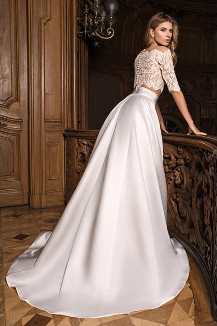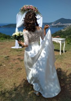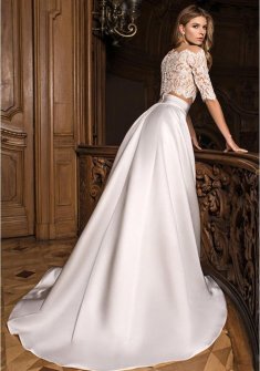 Продам свадебное платье цвета айвори модели кроп-топ. Юбка атласная, небольшой шлейф. Можно управлять юбкой с помощью карманов. Для удобства есть аккуратная петелька. Топ из кружева с чашками. Рукав 3/4. Очень красивое, нежное. Идеально подойдет для свадьбы у моря. Размер 40-42-44. Брала за 35 000 руб. Состояние идеальное.