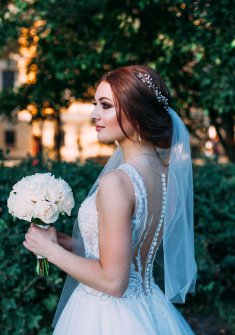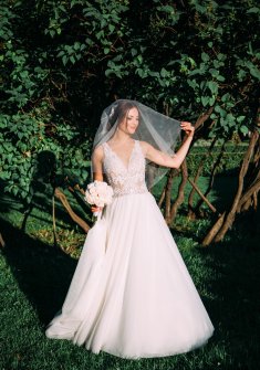 Платье от производителя Louise Spossa. Покупала в июле 2018 г за 39900 р в салоне Larein. Платье с модным в этом сезоне V вырезом, очень красиво расшито жемчугом и стеклярусом, А-силуэт со шлейфом, (чехол и кринолин в подарок)