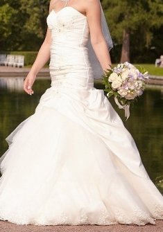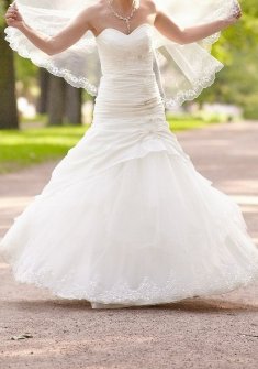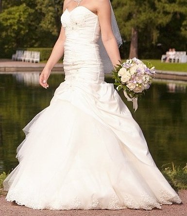 Продам свадебное платье Terri в отличном состоянии. Цвет - айвори. Декорировано вышивкой и бисером, сзади корсет на шнуровке. После свадьбы проходило химчистку, хранится в чехле. Продаю вместе с фатой, гармонично сочетается.