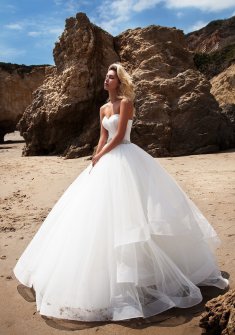 Шикарное платье в идеальном состоянии после химчистки. На рост около 160-165 с каблуком или без каблука на девушку повыше. Корсет регулируется, вполне подойдет и на неполный 46 размер. Покупалось в салоне Праздник, модель Кейси (с поясом). В подарок отдам кринолин на 2 кольца и чехол-сумку.