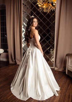 Изумительное платье с именем Грейс ищет новую хозяйку. Цвет платья айвори, подходит под любой тип кожи: и светлым, и смуглым девушкам. Платье А-силуэта может быть как пышным, так и приталенным. Все чеки есть; надевалось один раз и прошло полную химчистку. В платье добавлен пушап, грудь выглядит идеально. Платье легкое и удобное, что очень важно в такой день!