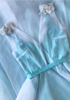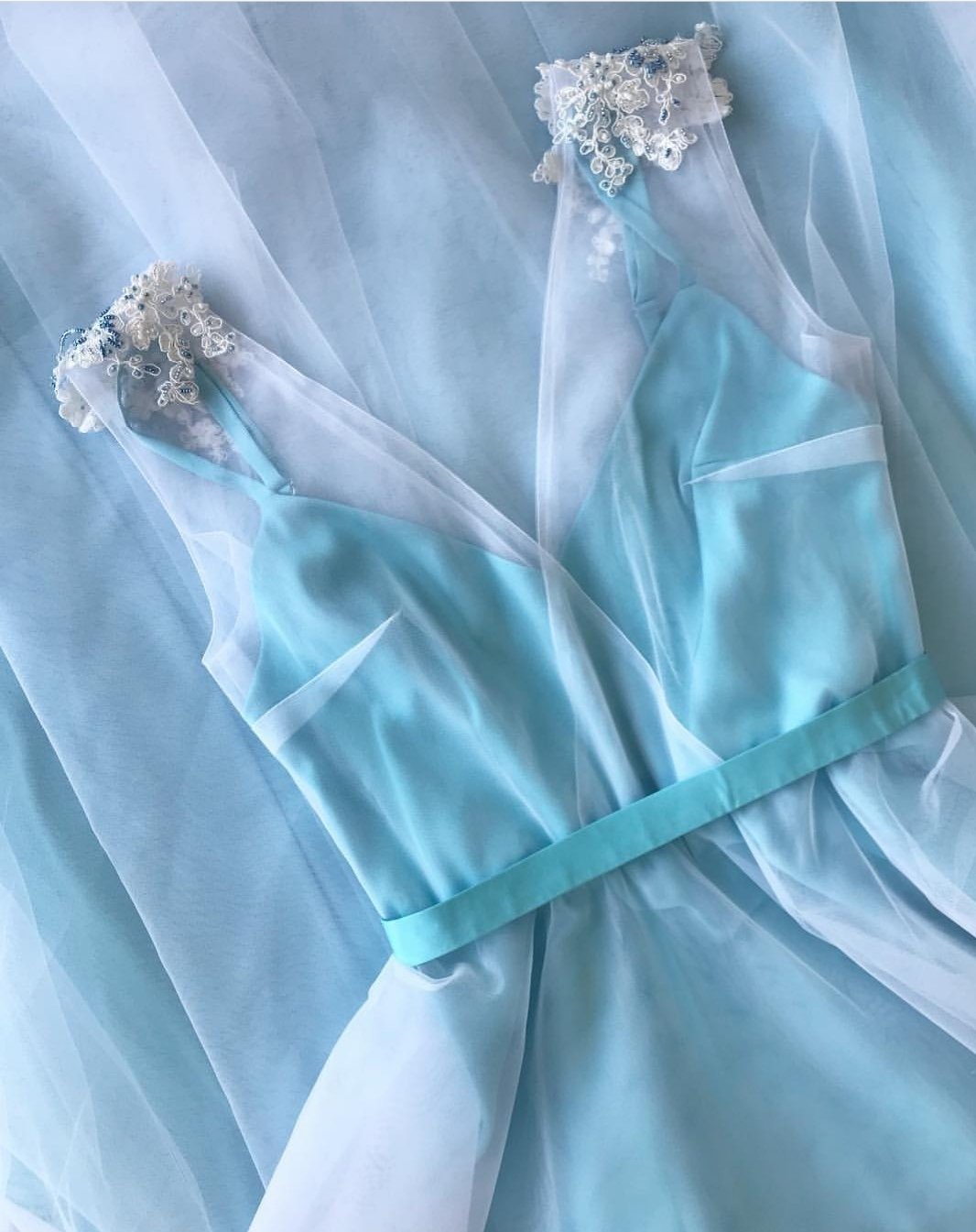 Свадебное платье бу, цвет голубой, цена 19 000 руб. №11904