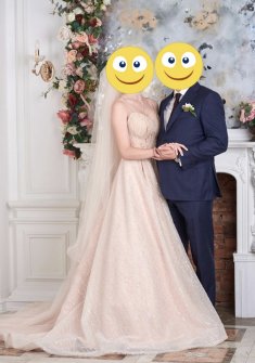 Свадебное платье, цвет «капучино», расшитое стеклярусом, пайетками. Корсет мягкий. Было использовано 1 раз. Рост модели ~ 173 см + размер каблука 10,5 см. В комплект к платью входит: 1. Фата, цвет «капучино»; 2. Украшение для волос, цвет подбирался специально для платья; 3. Кринолин состоящий из 2 гибких колец. Была произведена химчистка платья.