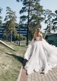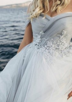 Платье нереальной красоты, шлейф, ручная вышивка (кристаллами). Цвет светло/серо-голубой, размер 44-46. Покупала в Санкт-Петербурге за 38.000 руб. (С учетом 10% скидки за первую примерку). Отдам за 22.000 руб. Торг минимальный. Платье после хим.чистки.