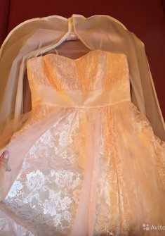 Шикарное платье нежного цвета с топом на корсете. Атласная юбка и нежное французское кружево! Было надето всего 2 раза (на выпускной и фото сессию) p.s. оно очень классное и жаль расставаться с ним, но я верю, что оно найдет новую хорошенькую хозяйку (44 размер, регулируется корсетом)