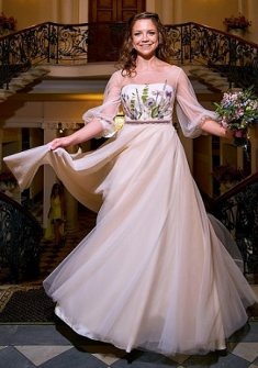 Красивое, летящее, легкое платье, без корсета (на талии есть широкая резинка), не сковывает движения, с вышивкой ручной работы. Цвет -- айвори, беж. Цена -- 20 тр (разумный торг возможен). По всем вопросам прошу звонить или писать в вотсап 8 906 227 11 56. Мерить -- д. Янино или по договоренности.