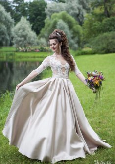 Платье в идеальном состоянии, от нового не отличить. Сделана химчистка! Куплено за 50 000р, могу показать договор на него. Оно точно такое как на фото. Могу прислать фото! Нереально красивое, а главное цвет шампань! Для девушки с размерами: грудь +/- 84, талия +/- 63, рост 165-170. Платье премиального сегмента, за пол цены такие редко продают. Это коллекция Rara Avis 2017г!