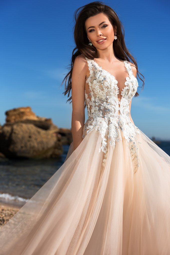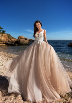 Свадебное платье бу, цвет кремовый, цена 25 000 руб. №12223