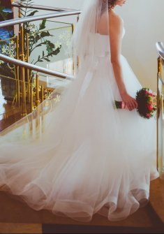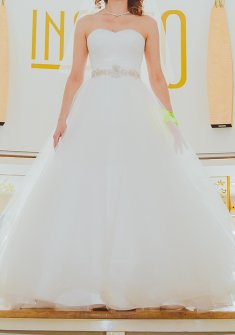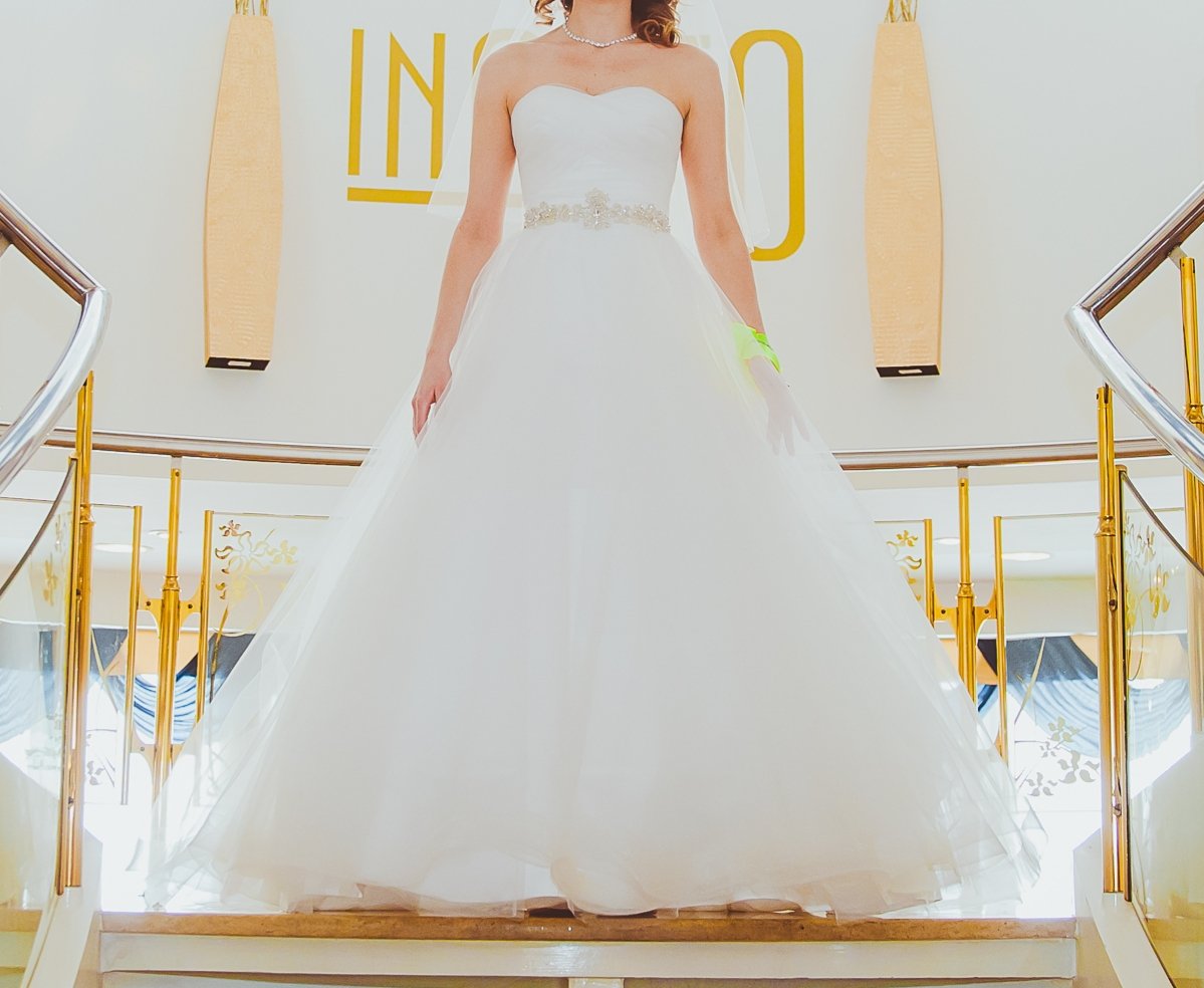 Свадебное платье из коллекции Natalia Romanova, бренд Sonesta, с пышной юбкой, корсетом и небольшим шлейфом. После химчистки
