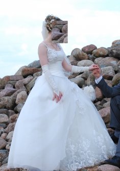 Свадебное платье бу, цвет кремовый, цена 8 000 руб. №12468