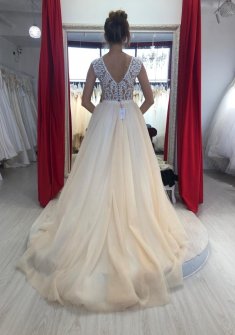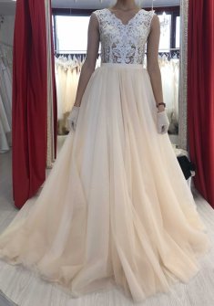 Свадебное платье бу, цвет кремовый, цена 1 000 руб. №12536