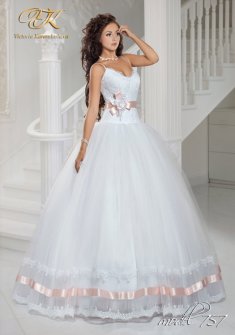 Потрясающее нежное пышное платье для стройной невесты, белое с розовой лентой. Новое, продажа после закрытия салона. Отправлю в любой город.