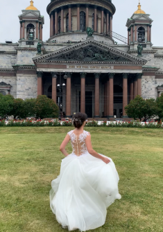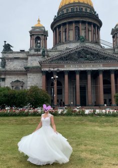 Платье после химчистки в идеальном состоянии. Модель Серенити 2020 года от дизайнера Анны Кузнецовой. Есть все бирки. Платье со шлейфом. В юбке чуть ниже спины сделан специальный крючок, на который пристёгивается шлейф и платье получается ровным по всей длине. Корсет расшит жемчужинами, надевается без бюстгалтера. К платью отдам бесплатно (или продам отдельно) кринолин. Мой рост 162 см + туфли с небольшим каблучком 5 см. Платье подойдёт на размер 42 (S). Мои параметры ОГ 81, ОТ 68, ОБ 90.