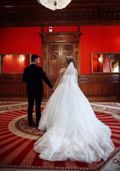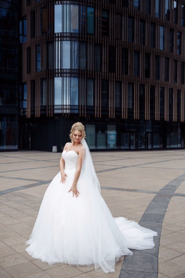 Шикарное свадебное платье. Шлейф придаёт помпезности. Получаются безумно красивые фотографии. На шлейфе есть петелька,чтобы удобнее было его носить. Корсет вышит стеклярусом,что даёт легкий блеск. Юбка вышита пайетками. Очень удобное платье. Весь день прошёл в нем налегке. Платье после химчистки. Размер регулируется благодаря корсету. От xs-m. Цена 17000 руб.