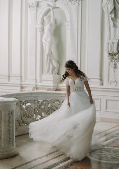 Платье в отличном состоянии, продаётся в родном чехле, в комплекте идёт подъюбник с кольцом, диадема для волос. Рукавчик отстегивается, шлейф можно закрепить на пуговку.