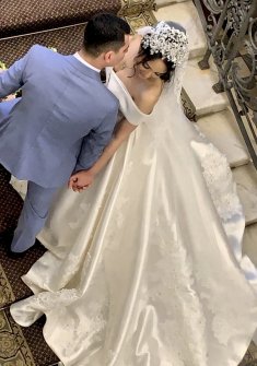 Продаю шикарное атласное платье от бренда MillaNova, размер 44-46 (S-M). Платье цвета Айвори с невероятным шлейфом, после химчистки, надевалось один раз, в идеальном состоянии. Фату покупала отдельно за 11 тыс., отдам в подарок + юбку с 3-мя кольцами. Цена за платье 40 000 рублей, уместен торг с реальным покупателем. Также возможна аренда платья!!!