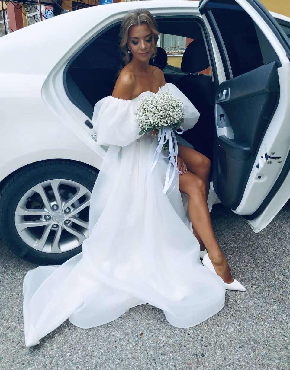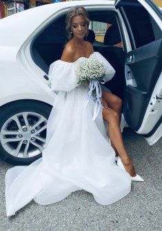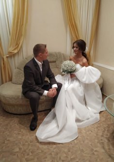 Продаю свадебное платье со съёмными рукавами. Тортюфо из салона jullybride. БРЕНД: Strekoza. Свадебное платье А-силуэта с пышными рукавами и разрезом на юбке. Спинка на корсете со шнуровкой. Основной материал: восковая органза. Размер: 42-44 Цвет: Айвори. Стоимость: 20000₽ Покупала за: 50.700 Надето в ЗАГС и фотосессию, на банкете не было, без пятен и разводов, после фотосессии было в химчистке в идеальном состоянии.