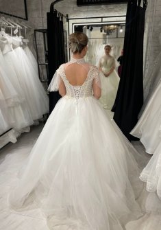 Индивидуальный дизайн, такого больше нигде нет. Свадебное платье сшито на заказ, ручная работа. Изначально шили под фигуру песочные часы (но пышная юбка делает его универсальным): Размер 44-48 (корсет), Длина юбки позволяет носить на рост от 150 см до 180см, Кринолин на 3 кольца в комплекте