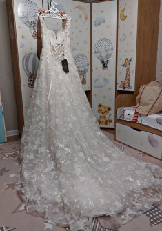 Платье новое, с биркой. Потрясающий длинный шлейф. Размер регулируется корсетом от 40 до 44