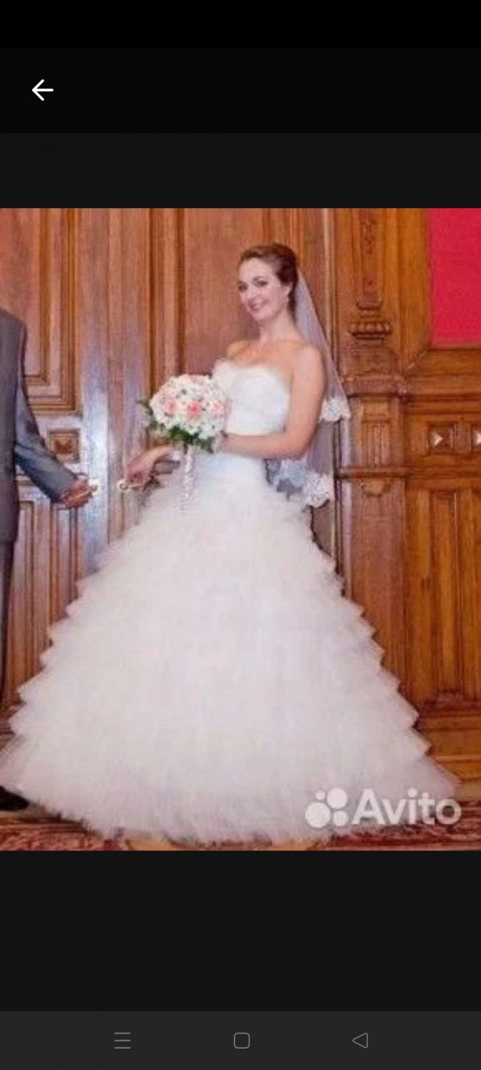 Шикарное свадебное платье 1 раз б/у и после химчистки!!! Цвет светлый Айвори, заниженная талия, нежнейшее, и лиф очень красивый, прямо лебёдушка! На фото у меня размер 46, рост 180. Обратите внимание, что высоту подола можно отрегулировать, надев кринолин выше либо ниже.