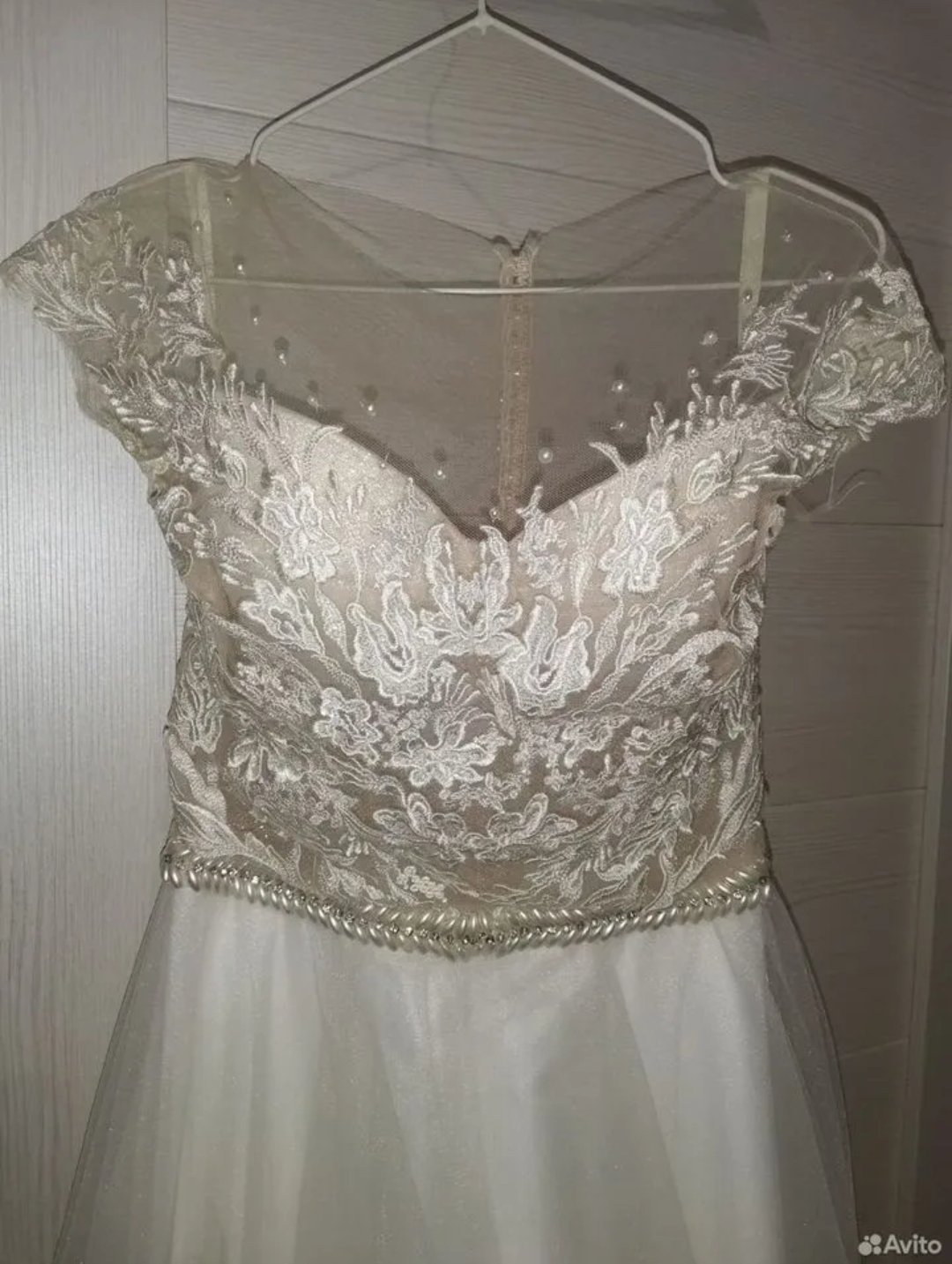 Счастливое свадебное платье "Принцесса Монако" свадебного салона Alisa Wedding в бежевом (золотисто-кремовом) цвете с белым воздушным подолом с подкладкой, размер 44-46. Верх из полиэстера с кружевным декором и прозрачной юбкой. Юбка длиной до пола для создания воздушного силуэта. Платье украшено бусинами на лифе и корсете, а также кружевом. Подкладка обеспечивает комфорт. Состояние хорошее, подходит для роста 165 см и веса 60-70 кг. Химчистка не проводилась.