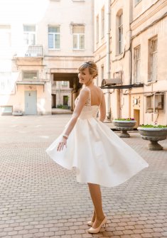 Милые невесты, продаю потрясающее свадебное платье. Надето один раз. Состояние отличное, после химчистки. Цвет Айвори. Материал "тафта" + кружево, открытая спинка. Чехол в подарок. Платье счастливое). Примерить можно по адресу: СПб, Кудрово, ул. Столичная.