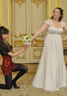 В подарок фата и шубка.