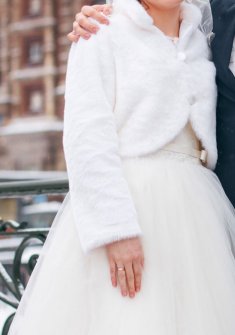 Платье молочного цвета. 46 размер. Бархатное кружево на корсете и рукавах, летящая невесомая юбка из еврофатина, красивый V-образный вырез на спинке. Очень нежная модель. Одевала его 2 раза - на венчание и в ЗАГС. Носила очень осторожно. Оно в идеальном состоянии, обновлённое в химчистке! Единственный изъян - пару маленьких дырочек в самом низу на фатине (не более 1см диаметром). не видны в складках. Бантик на платье расположен сбоку, а не посередине, как на фото. Цена - 18 000р. Торг уместен :)