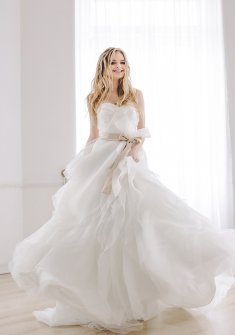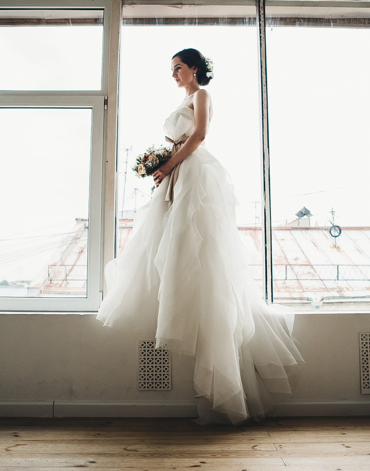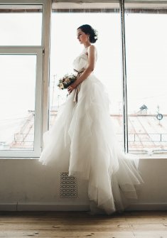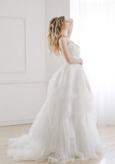 В идеальном состоянии, удобные корсет и чашки, кринолин не предполагается. Дополнительно имеется крючок для недлинного шлейфа - носится комфортно, пачкается минимально. За счет шнуровки корсета размер варьируется от 42 до 46, рост - 168-180 см. Лёгкое, воздушное, одевалось в день типичного петербургского лета - холодно или жарко в нем не было. По желанию могу прислать доп. фотографии.