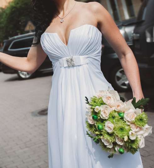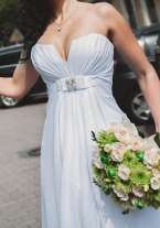Свадебное платье стиля ампир с оригинальным вырезом на корсете. Очень нежное с элегантной брошью (если что, снимается), сзади небольшой шлейф из шифона, шнуровка. В идеальном состоянии - после химчистки. Плюс туфли, если что, размер 37.