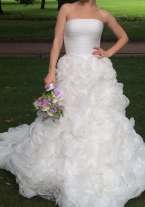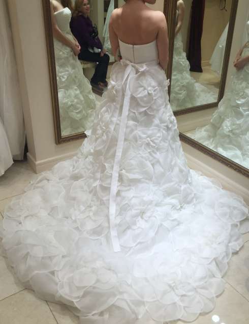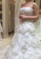 Платье из подиумной коллекции Рronovias. Очень красивое. Есть пояс в комплекте. Нужна химчистка подола. На фото рост 160 с каблуком 11см.