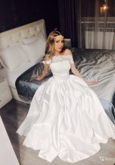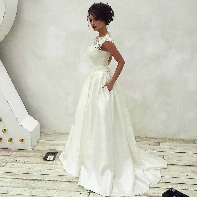 Легкое и элегантное свадебное платье цвета айвори. Верх расшит кружевом, атласный низ. Приобретала за 25 000 руб. Размер 40-44 (регулируется корсетом). Платье после химчистки, не венчано. При необходимости могу выслать дополнительные фото.