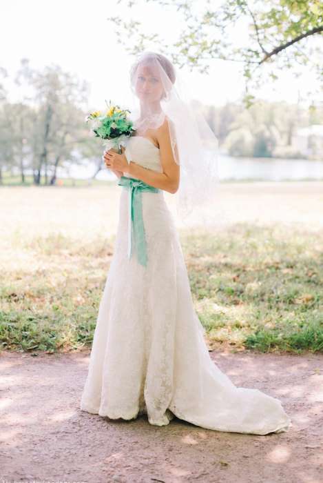 Чудесное платье с кружевами. Удобный мягкий корсет, шнуровка, петелька для шлейфа. Пояс можно перешить, Состояние хорошее, после химчистки, покупалось за 22 000, отдам за 5 000. Оно очень красивое, так жаль, что просто висит в шкафу!