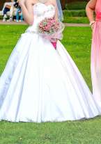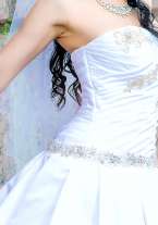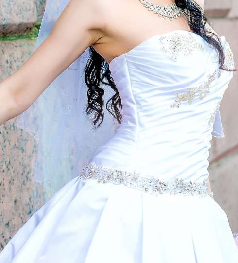 Платье "Тереза", дизайн Oleg Baburov, вырез сердечком, платье А-силуэт. На рост от 153 до 165 см, размер 42-46.Корсет украшен стразами. Материал платья белоснежный переливающийся атлас, есть шлейф. В подарок кринолин на 3 кольца, фата, чехол для платья. Химчистка проведена. Состояние отличное. Кплатью продаю новую пелеринку - 1500 руб. (не пригодилась), новые митенки - 1300, не пригодились. Примерка 15 мин. пешком от м. Академическая. Торг.