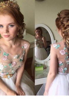 Продам своё свадебное платье. Корсаж телесного цвета с шелковой сеточкой, на которой вышиты Розы (ручная работа), вшиты чашечки. Юбка выполнена из 6 слоёв: верхний слой еврофатин нежно розового цвета, 2 слоя шелкового фатина, 2 слоя шелка розового цвета и подъюбник. Имеется небольшой шлейф около 50 см. Платье подогнано под рост 158+10 см каблук. Размер 40 (80-60-90). На миниатюрную девушку :) Платье очень красивое, женственное, легкое. Покупалось на заказ за 47 т.р. + подгонка. Отдам за 25 т.р.