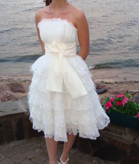 Платье, сшито на заказ, салон Caprice. Цвет айвори. Одевалось один раз на танец. Размер регулируется шнуровкой сзади.